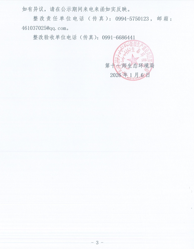 关于第十一师第一轮兵团生态环境保护督察反馈意见(序号31)整改完成情况的公示